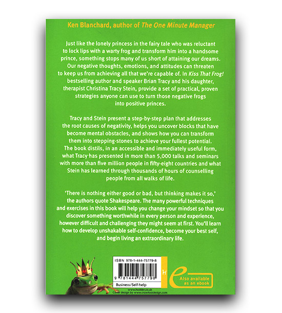 درست مثل شاهدخت تنها و زیبای قصه ها که تمایلی به بوسیدن وزغی بدریخت نداشت تا او را به شاهزاده ای خوش سیما تبدیل کند، چیزهایی وجود دارند که بسیاری از ما را از رسیدن به رویاهایمان بازمی دارند. تفکرات منفی، احساسات و اعتقادات ما می توانند ما را از تمام اهدافی که به سمتشان در حرکت هستیم دور سازند. کتاب Kiss that Frog نوشته نویسنده و سخنران مشهور "برایان تریسی" و دخترش "کریستینا تریسی"، راهکارهای عملی و کاربردی فراوانی را مهیا کرده تا با استفاده از این روش ها، همه قورباغه های منفی و زشت تبدیل به شاهزادگان مثبت و زیبا شوند.